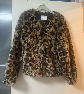 Cazadora de pelo con estampado animal print. - Diseño de pelo suave. - Cierre de cremallera frontal con tirador. - Cuello redondo.