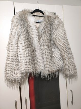 Abrigo de pelo sintético en color gris. Su corte oversize lo hace muy cómodo y moderno. - Tacto muy suave. - Diseño amplio. Solo usado en una ocasión, muy buen estado.