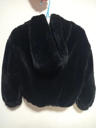 Abrigo de pelo sintético con un diseño moderno y cómodo. - Material: Pelo sintético suave. - Cierre: Cremallera frontal. - Detalle: Capucha integrada. - Puños: Elásticos.