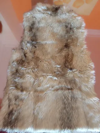 Abrigo de pelo sintético para mujer. - Diseño largo. - Textura suave y cálida. - Cierre frontal. talla s-m equivale para talla 36-38 queda por la rodilla el abrigo y muy calentito Medida largo 93 y de contorno 103 usado solo una vez