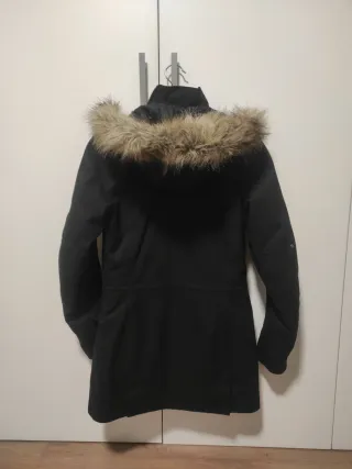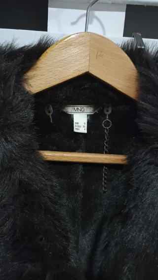 Sin estrenar. Chaquetón negro con un diseño entallado y un cálido forro interior de pelo. Es talla S pero da para una 38/M. - Cremallera frontal con tirador. - Bolsillos laterales con cremallera y detalle de anilla. - Capucha integrada.
