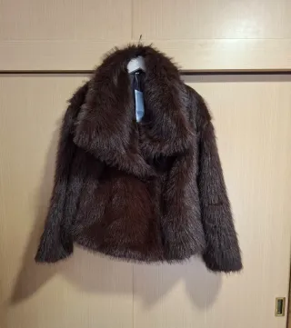 Abrigo corto pelo sintético marrón