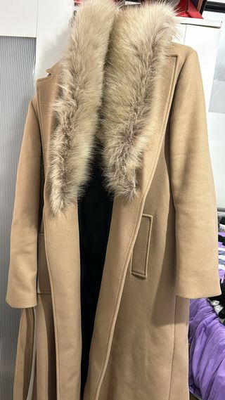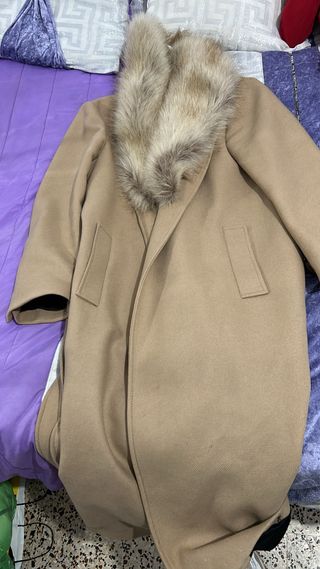 Abrigo beige con cuello de pelo