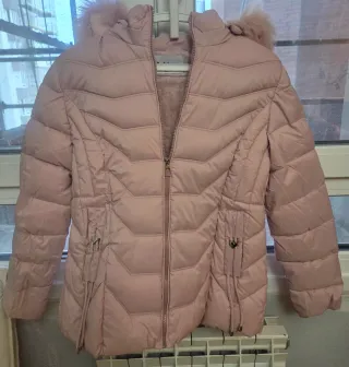 Cazadora rosa forrada con capucha, puesta 1 vez,