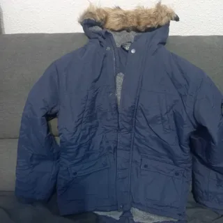 Abrigo acolchado con capucha y pelo sintético, muy calentito. - Cierre de cremallera. - Bolsillos laterales con botón. - Puños elásticos. _ Capucha desmontable y también se puede quitar solo el pelo de la capucha. Esta en muy buen estado
