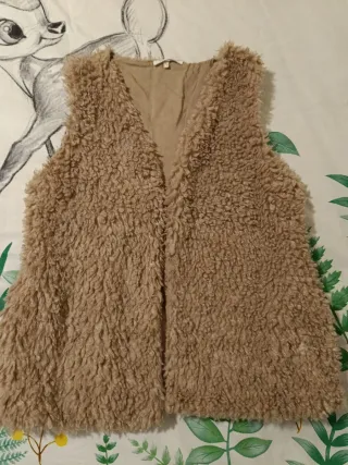Chaleco de pelo sintético en color beige. Es una prenda muy suave y calentita, perfecta para añadir un toque de estilo a tus outfits. - Material: Pelo sintético. - Diseño abierto con cierre ganchito - Tacto muy agradable. - Con bolsillos y forrado.