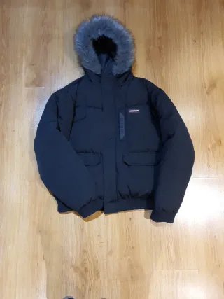 Abrigo reflectante negro con capucha de pelo sintético. - Cierre de cremallera. - Bolsillos frontales con solapa. - Puños y bajo elásticos. Precio 99€ negociable