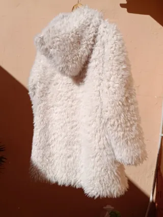 Abrigo corto de Sfera pelo Sintético muy suave y calentito me lo he puesto una vez con corchetes para cerrar y bolsillos es una L amplio para una chica alta queda como me queda a mi..muy versátil para vaqueros..vestidos..pantalón vestir..me costó 39.99€ más ropa nueva e impecable en mi perfil!