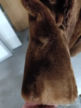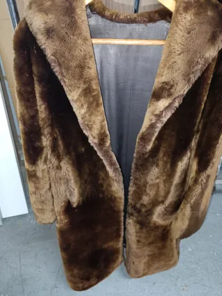 Abrigo de pelo sintético en color chocolate. Es una prenda elegante y cálida.talla de M a L - Tacto suave y agradable. - Diseño moderno.