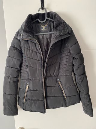 - LLeva pelo sintético en el cuello de quita y pon. - Forro en el interior con mangas ajustables a la muñeca para que no pase el frío. - Muy acolchado y calentito. - Dispone de dos bolsillos con cremallera. - Entallado. Le da forma a la figura. - En buen estado salvo que le falta un botón de cleck como se ve en la última foto. - Color azul marino. - Talla M.