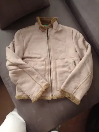 Chaqueta de pelo sintético color beige, talla M pero sirve para talla L porque da bastante talla. Es suave y calentita, ideal para los días más fríos. No tiene etiqueta. - Corte clásico. - Cierre con botones - Bolsillos funcionales.