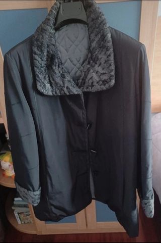 chaqueta cruzada de solapa. pelo sintetico. sin estrenar. talla grande 42/44. la vendo porque no me queds bien la talla. tiene etiqueta