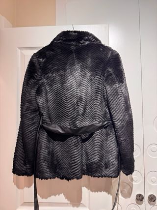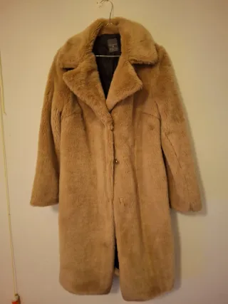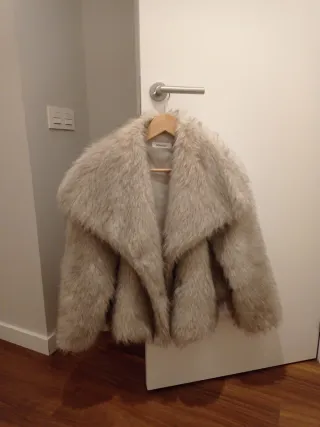 Es un abrigo con pelo super suave suave 🐨 Queda genial para un look casual así como para un evento de noche más elegante. Tiene un cinturón que hace resaltar la figura. Queda estupendo y brilla sin necesidad de esfuerzo ⭐ Es talla XS pero queda perfecto para una S. Listo para estrenar! 🎁