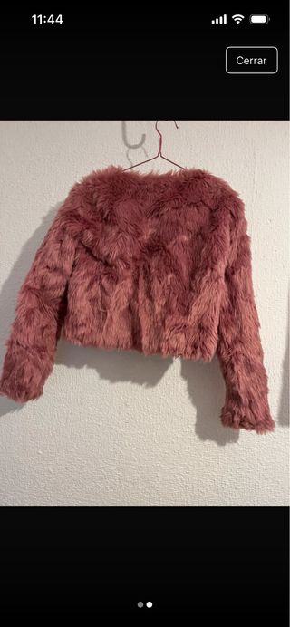Abrigo corto de pelo sintético con un diseño moderno y cálido. Es rosa palo Esta sin estrenar - Cierre de cremallera. - Cuello alto. - Mangas largas. - Tacto muy suave.