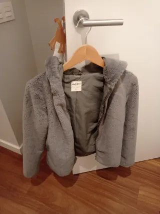 Abrigo reversible de Mango, talla XS. Por un lado es tipo pelliza de piel sintética y por el otro borreguillo.