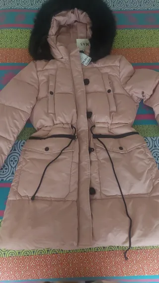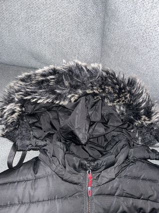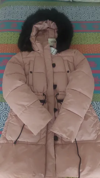 Abrigo de invierno con forro interior suave y capucha. - Capucha con detalle de pelo sintético. - Forro interior de borreguito. - Cierre de cremallera. - Bolsillos frontales con solapa y cordón ajustable en cintura. No hago envios
