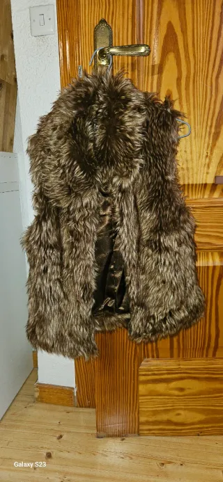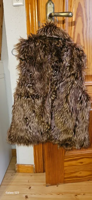 Precioso chaleco de pelo sintético jaspeado marrón Stradivarius. Talla M algo ajustada. Con bolsillos ocultos. Puesto 2 veces, abriga y es súper suave. Cierre cremallera. Forro interior satinado.