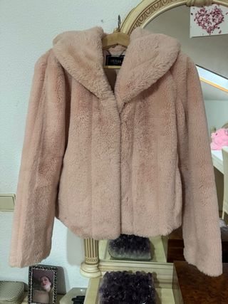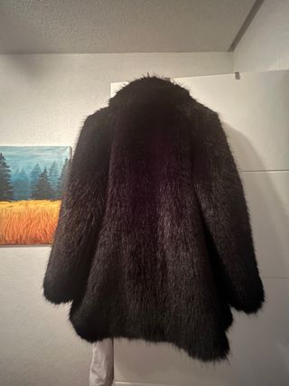 Abrigo de pelo sintético con un diseño moderno y elegante. - Tacto suave y agradable. - Corte cropped. - Cierre de corchetes. Sin estrenar, su precio fue 50€. No tiene etiqueta pues está tienda no trae, fueron comprados dos para una boda pero este no se llegó a usar