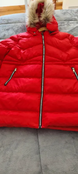 Cazadora de invierno para mujer con un diseño acolchado y detalles en los bolsillos. - Capucha con pelo sintético que se separa de la chaqueta con cremalleras, el pelo también se puede separar del resto de la capucha mediante otra cremallera. Talla 48 Española. - Cierre de cremallera con cubre botones. - Bolsillos frontales con cremallera y detalle. - Puños elásticos. En perfecto estado solo desgaste en la empuñadura de la cremallera de un bolsillo . Envío