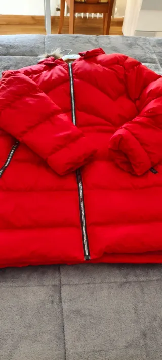 Preciosa chaqueta Desigual de color rojo, talla 13/14 (equivalente a una S). Está prácticamente nueva. Costó 80€ - Diseño floral. - Capucha con pelo sintético. - Acolchado. - Muy abrigado.