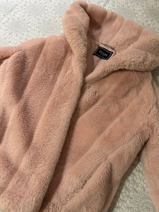 Abrigo de pelo sintético en color rosa de la marca Guess. Es una prenda suave y calentita. talla XS / S. Nuevo, en perfectas condiciones - Diseño con cuello - Cierre de corchetes -bolsillos