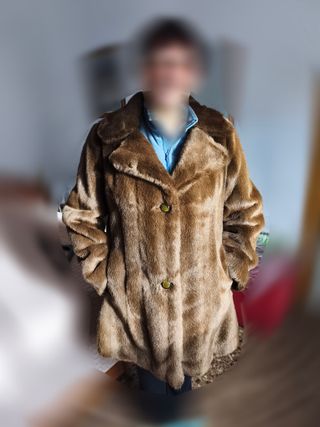 Elegante abrigo de pelo sintético para señora. Una prenda cálida y con estilo. - Material: Pelo sintético. - Cierre con botones. - Diseño clásico con cuello.