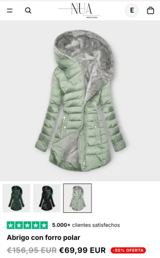 Abrigo de pelo sintético con capucha. - Tacto muy suave. - Diseño moderno y elegante.