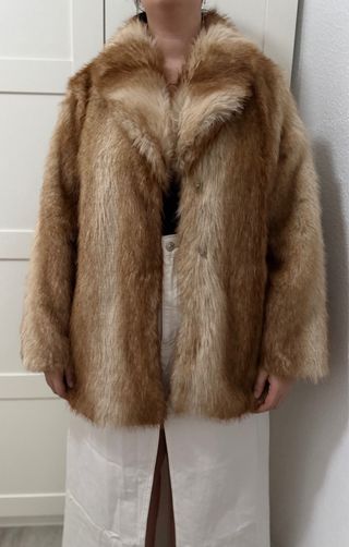 Chaqueta de pelo sintético de Zara, ideal para añadir un toque de estilo. - Tacto muy suave y agradable. - Diseño moderno y elegante. - Cierre frontal.