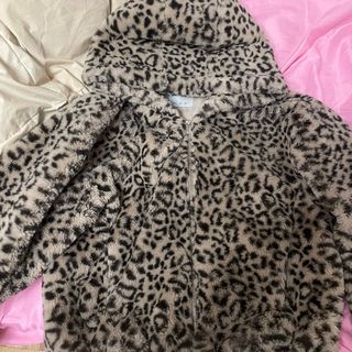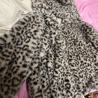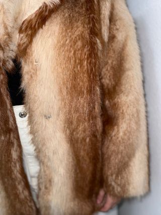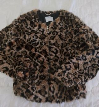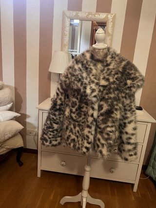 Abrigo de pelo sintético con un llamativo estampado. - Diseño de pelo suave y esponjoso. - Estampado animal print en tonos beige,negro y gris. -Solo usado para probarlo -Muy calentito