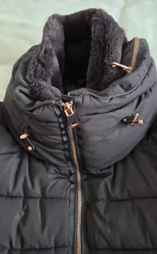 Abrigo acolchado con un suave forro interior de pelo. - Diseño acolchado. - Forro interior de pelo. - Cierre de cremallera. Nuevo a estrenar