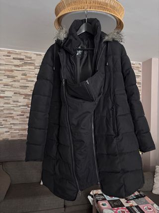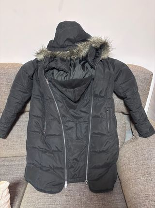 Abrigo versátil de la marca BPC, perfecto para diversas ocasiones. Tiene función para porteo, embarazo o abrigo sin accesorios - Diseño acolchado. - Capucha con pelo. - Cierre de cremallera.