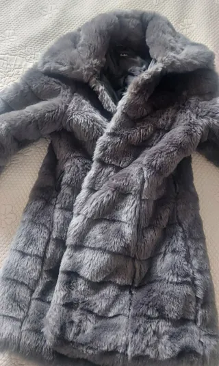 Abrigo largo de pelo sintético en color gris. Es una prenda muy suave y cálida, con un diseño moderno y elegante. - Tacto muy agradable. - Corte amplio y cómodo. - Supercalentito