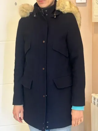Abrigo reversible de la marca Salsa, ideal para el frío. - Diseño reversible. - Con capucha de pelo. - Cinturón para ajustar. - Bolsillos laterales. Me quede embarazada y me queda pequeño.