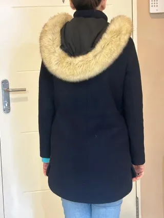 Abrigo de Zara en color azul marino, con detalles en la capucha. - Cierre de botones. - Bolsillos frontales. - Capucha con pelo.