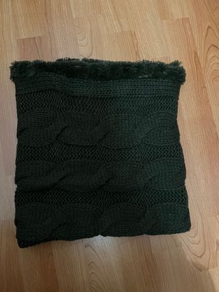 Cuello de punto grueso en color verde oscuro, con pelo en el interior para mayor calidez. Diseño trenzado. Abriga, calentito, suave y nuevo
