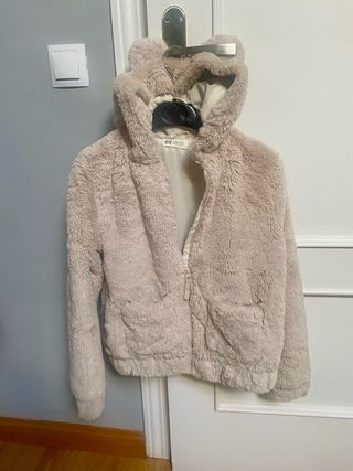 Abrigo corto beige de pelo con capucha de H&M. Muy ponible con cualquier look. En perfecto estado Talla 10-12