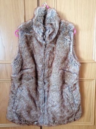 Chaleco de pelo sintético de PULL&BEAR con cierre de cremallera y 2 bolsillos laterales. Talla S. No se ha usado por pequeño.
