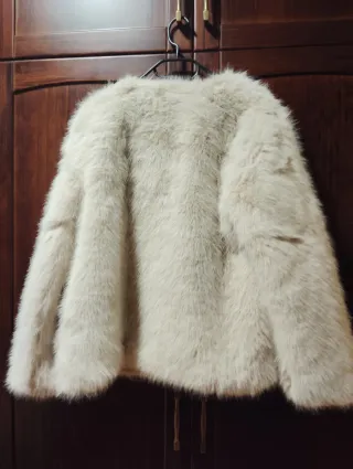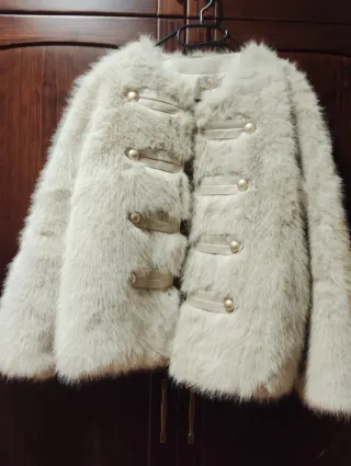 Abrigo de pelo sintético de Stradivarius, con etiqueta. - Diseño moderno y elegante. - Tacto muy suave y agradable. - Color neutro fácil de combinar.