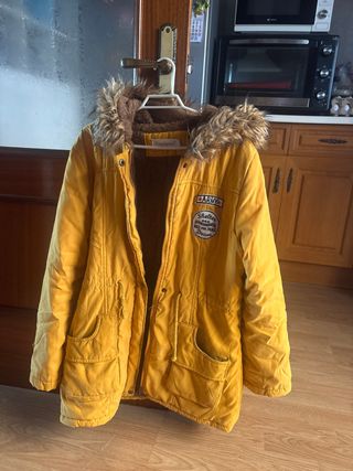 chaqueta de pelo con capucha muy calentita, talla xxl pero equivale a una L practicamente nueva muy poco uso