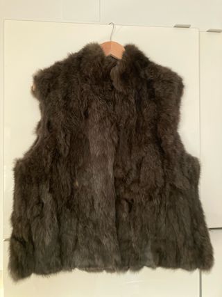 Chaleco de pelo sintético en tono gris marengo. Es una prenda suave y cálida, ideal para añadir un toque de estilo.Esta prácticamente nuevo puesta una par de veces. - Diseño sin mangas. - Forro interior. - Tacto agradable.