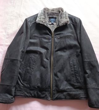 Cazadora Cortefiel de color marron oscuro, con forro interior. - Cuello y forro con pelo sintético. - Bolsillo con cremallera en el pecho. - Bolsillo de parche en el frontal. - Puños con cremallera y botón. _ Muy confortable _ No tiene roces, manchas ni defectos por uso - Buena calidad de piel de cerdo tratada. _No tiene uso