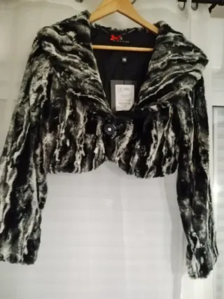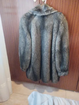 Abrigo de pelo sintético en buenas condiciones. Ancho 60 cm Manga desde axila 40 cm Manga desde hombro 60 cm Largo desde cuello 80 cm