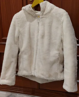 Abrigo de pelo blanco de niña de la marca Lefties, talla 11/12 años. Está muy nuevo, con muy muy pocas puestas.Tiene capucha incorporada. Dos bolsillos delanteros. Por dentro el forro es de lunares pequeñitos. Es muy calentito, cómodo y de tacto muy suave. Acogedor e ideal para el invierno.