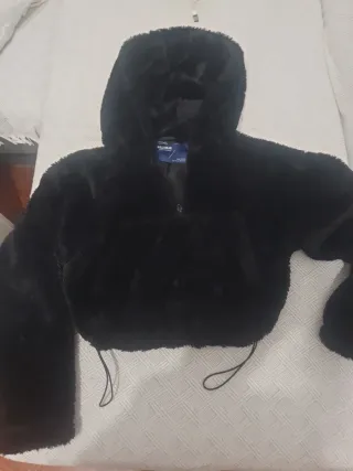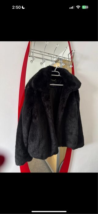 Abrigo de pelo en color negro. Es una prenda elegante y cálida. - Diseño de pelo suave. - Cuello amplio. Sin usar Talla XS pero equivale más bien a una S e incluso puede valer para M/L es anchita Muy buena calidad Dos bolsillos Se puede abrochar, ver dos últimas fotos