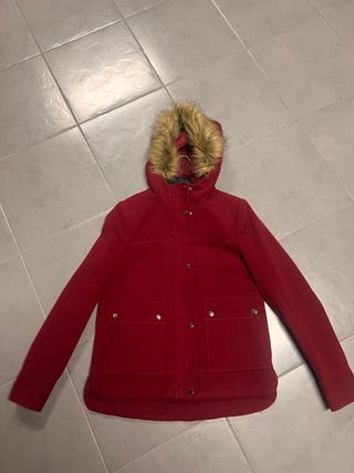 Vendo abrigo acolchado de invierno muy calentito, de color burdeos, con cuello de pelo suave. Es talla S y pone que es de Italia. Muy buen estado, sin defectos ni apenas uso. Ideal para el frío❄️🧣 Tiene bolsillos con cremallera y queda muy bonito puesto. Entrega en mano o envío. - Cuello con pelo sintético. - Dos pompones de pelo sintético en la parte inferior.
