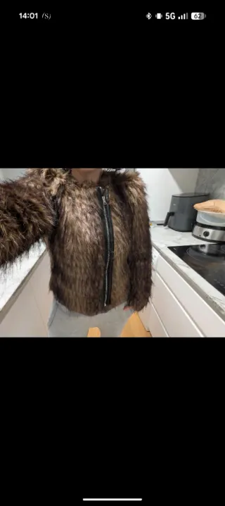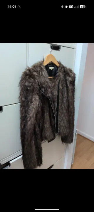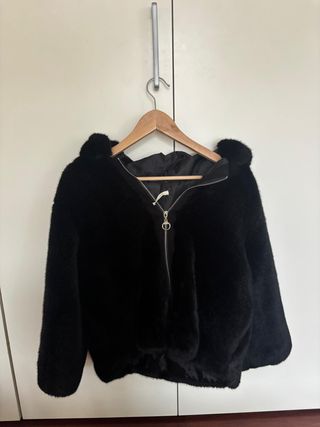 Casi sin uso, en perfecto estado. Rayas blancas en las mangas. Abrigo de pelo con capucha. Precio negociable