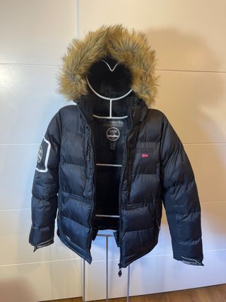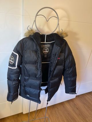 Abrigo acolchado Geographical Norway con capucha de pelo Abrigo de invierno de la marca Geographical Norway, muy cálido y cómodo, ideal para los meses de frío. Capucha con pelo sintético en muy buen estado. Interior completamente forrado tipo polar, que aporta un extra de abrigo. Exterior acolchado y resistente, pensado para proteger del frío y el viento. Cierre mediante cremallera y botones. Diseño moderno y deportivo, fácil de combinar para uso diario. Color negro. Estado: muy bueno, bien cuidado, sin rotos ni desperfectos visibles. Marca: Geographical Norway. Perfecto para invierno, tanto para ciudad como para escapadas a zon