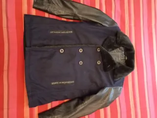Abrigo Serge Pariente Cuero y Lana Azul Marino