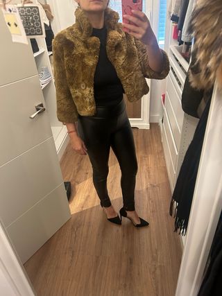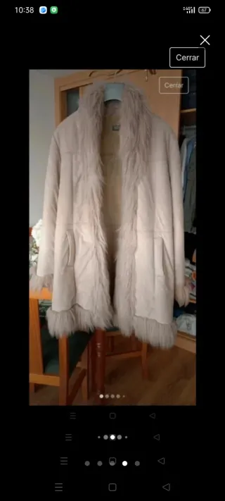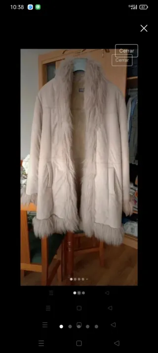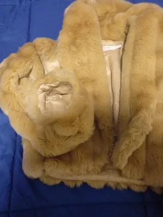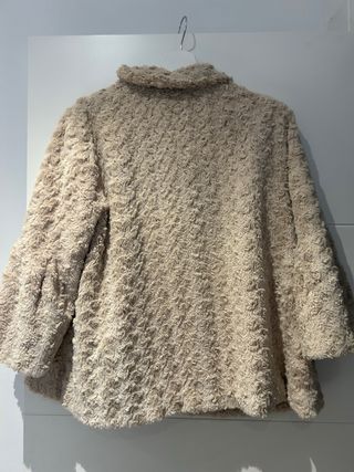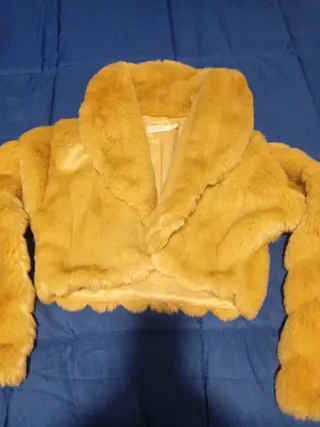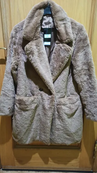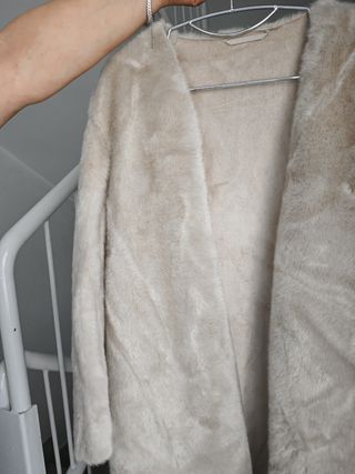 Vendo abrigo de pelo sintético en color beige, talla XS/S, con un tacto muy suave y agradable. Es una prenda de estilo moderno y cálido, perfecta para añadir un toque chic a tus looks. - Diseño corto y oversize. - Cierre de corchetes. - Bolsillos laterales. Ben estado