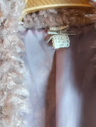 Elegante abrigo de pelo sintético con forro interior. Ideal para estas fechas - Diseño de pelo suave y esponjoso. - Forro interior de color rosa con estampado.